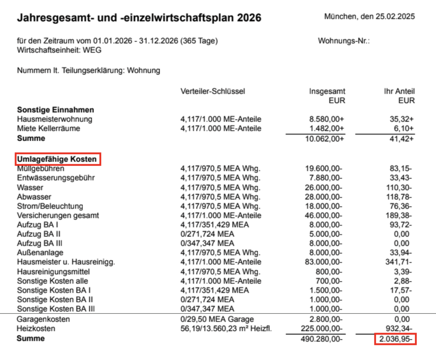 - Grundlage für dein monatliches Hausgeld